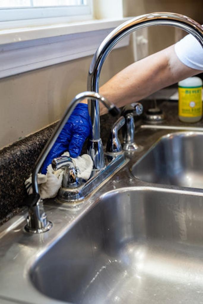 We follow a 2 step process for disinfecting. First we thoroughly clean the touch point surfaces, second we disinfect all high touch surfaces with an EPA approved disinfectant.